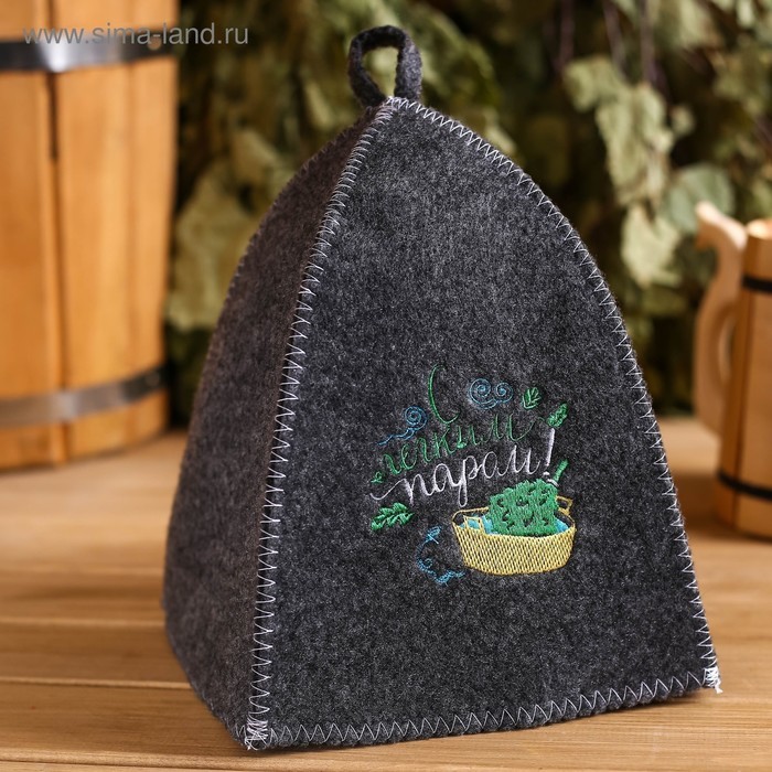 Набор для бани с вышивкой «С лёгким паром! Шайка», 5 предметов: шапка, коврик, рукавица, тапочки, сумка, тёмный, «Добропаровъ»Вопросы по товару