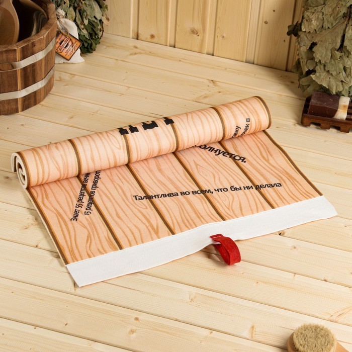 Коврик - лежак для бани и сауны с принтом «5 главных правил в бане», 150?50 см, полиэфир 70%, шерсть 30%, «Банная забава»Вопросы по товару