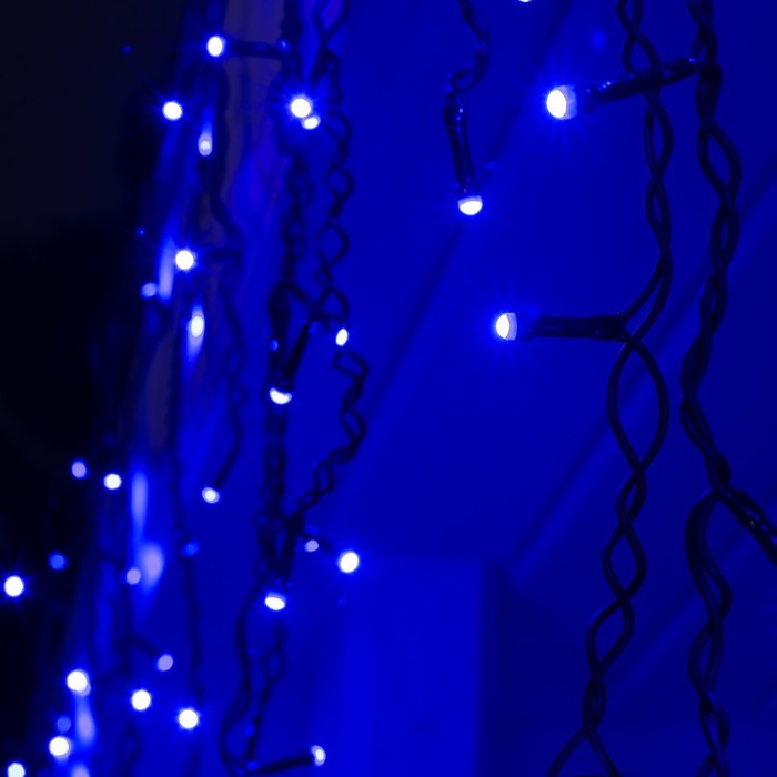 Гирлянда «Бахрома» 3 ? 0.6 м, IP44, УМС, тёмная нить, 160 LED, свечение синее, 220 ВВопросы по товару