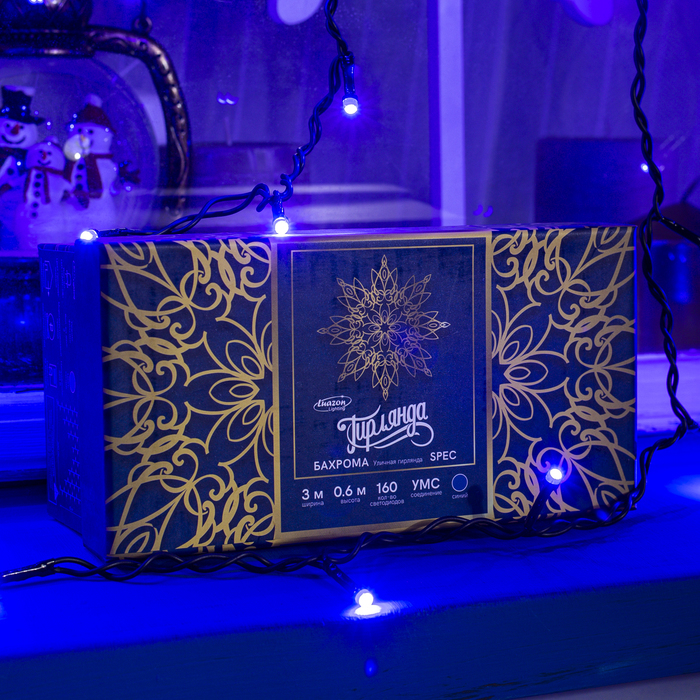 Гирлянда «Бахрома» 3 ? 0.6 м, IP44, УМС, тёмная нить, 160 SMD-LED, свечение синее, 220 ВВопросы по товару
