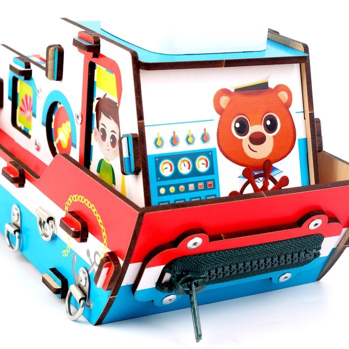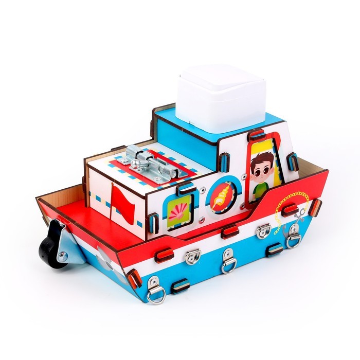 Деревянный бизиборд «Параходик» — это увлекательная развивающая игра для мальчиков от 3 лет, которая помогает изучать окружающий мир и осваивать навыки самообслуживания. В комплекте 8 активностей, вкл... Показать описаниеючая выключатель, молнию, шнуровку и другие элементы. Особенности * Изготовлен из натурального дерева, что делает его безопасным, экологичным и долговечным. * 8 интерактивных элементов: выключатель, колокольчик, молния, щеколда, колесо, рамка-вкладыш, шнуровка и липучка. * Простая механика: ребёнок исследует различные механизмы, развивая координацию, моторику и социальные навыки. * Компактный размер идеально подходит для игр дома или в детском саду. * Подходит для мальчиков, дополняя развивающую среду функциональными акцентами. Чем полезен этот бизиборд «Параходик» помогает ребёнку освоить важные навыки: завязывать шнурки, застёгивать молнии, открывать и закрывать замки. Играя с элементами, малыш учится выполнять последовательные действия, тренирует внимание и усидчивость. Задачи по изучению различных механизмов стимулируют воображение и формируют базовые представления о свойствах предметов. Это не только занимательное занятие, но и источник новых знаний, которые формируют когнитивные и практические навыки. Каждый этап игры стимулирует самостоятельность и уверенность в своих силах. Эта игрушка станет универсальным подарком для мальчиков, которые любят исследовать мир через игру. Она сочетает в себе обучение и развлечение, превращая каждую минуту игры в возможность для роста и развития.