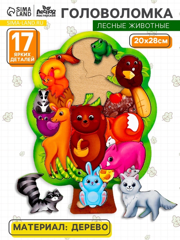 Головоломка «Лесные животные», 17 деталей, 28?20 смВопросы по товару