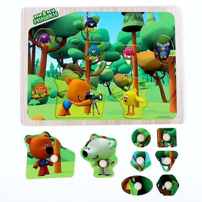 Любимая игра в мягком деревянном формате. Вкладыши «Фотоохота» по мотивам мультсериала «Ми-ми-мишки» — это яркая развивающая доска с крупными деталями, которые удобно брать маленькими руками. Каждый э... Показать описаниелемент оформлен в стиле мультфильма, что делает игру особенно эмоциональной и узнаваемой для ребёнка. * 8 деревянных элементов: крупные детали легко вставляются в свои формы, тренируя точность и уверенность движений. * Любимые персонажи: знакомые герои делают игру интереснее и помогают дольше удерживать внимание ребёнка. * Крупный размер — 30?22.5 см: удобная основа для занятий дома или в детском саду. * Безопасный материал: гладкое дерево без острых углов подходит детям от 3 лет. * Развитие навыков: моторика, логика, внимание и узнавание образов формируются естественно — через игру. Зачем малышу такие вкладыши? Они помогают освоить первые логические действия, учат сопоставлять форму и картинку, развивают самостоятельность. «Фотоохота» превращает привычное занятие в увлекательную игру, где ребёнок общается с любимыми персонажами и делает свои маленькие открытия каждый день.