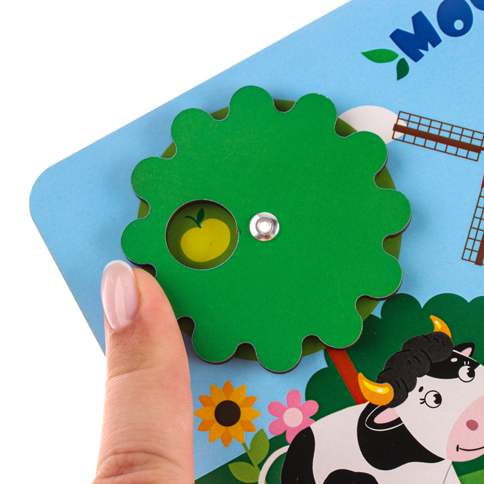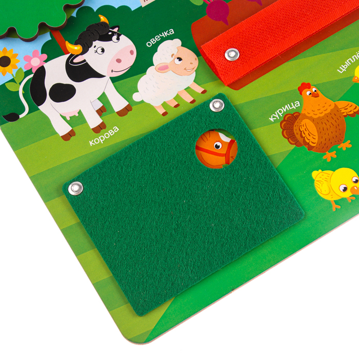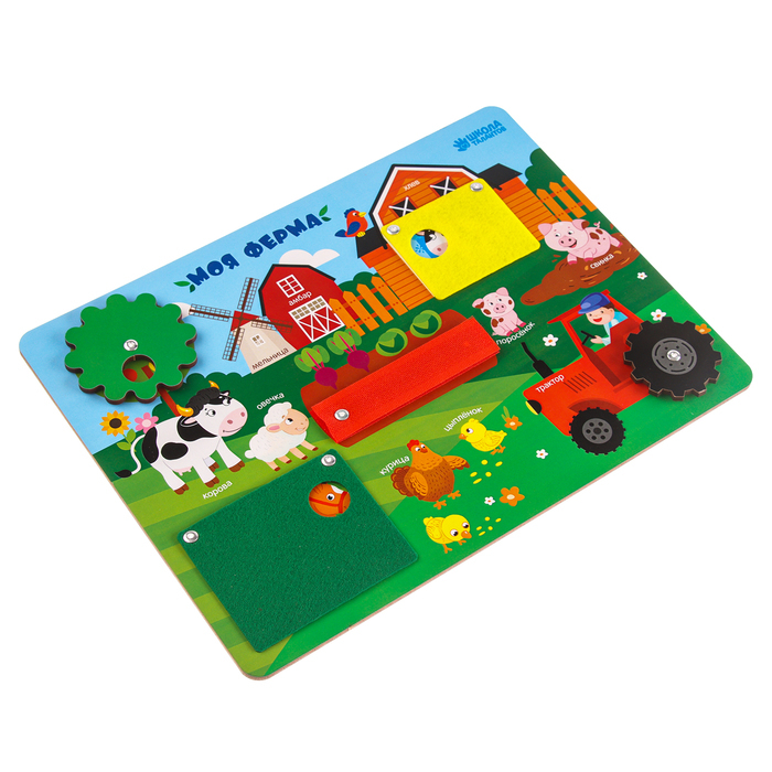 Игрушка, с которой ребёнок открывает мир форм и действий. Деревянный плоский бизиборд «Ферма» — спокойный и понятный вариант для первых занятий с рамками-вкладками. Ребёнок учится сопоставлять элемент... Показать описаниеы, удерживать внимание и запоминать расположение деталей, а вы видите, как развивается логика и уверенность в движениях. * Натуральное дерево: прочные элементы с приятной текстурой хорошо лежат в руке и выдерживают частую игру. * Рамка-вкладка: каждая деталь занимает своё место — ребёнок концентрируется на поиске правильной формы и подходит к задаче шаг за шагом. * Тематика «фермы»: знакомые образы удерживают интерес и помогают ребёнку быстрее осваивать фигуры и цвета. * Тренировка моторики: малышу важно поворачивать элементы, пробовать варианты, запоминать расположение — игра становится маленькой тренировкой для пальчиков и внимания. * Универсальная развивающая игрушка: подходит для занятий дома, в детском саду и на ранних развивающих занятиях. Помогите ребёнку расти уверенно: такие спокойные и продуманные игрушки создают устойчивый интерес к обучающим играм. Изо дня в день малыш делает маленькие открытия, а вы видите этот прогресс без лишнего напряжения. Добавьте в детскую коллекцию надёжную деревянную классику, которая работает на развитие каждый раз, когда ребёнок берёт её в руки.