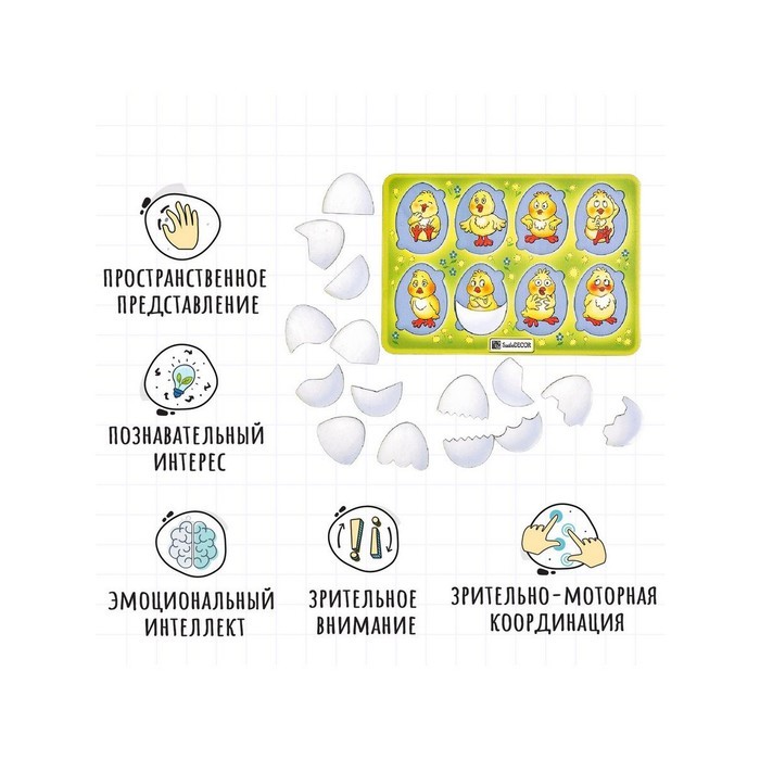 Головоломка «Эмоции» — это разработка, которая помогает детям развить эмоциональный интеллект! Играйте и учитесь * Распознавайте и выражайте различные эмоции: гнев, удивление, радость, грусть, страх, ... Показать описаниезадумчивость, обиду, стеснение. * Придумывайте истории с цыплятами, обсуждайте их настроение и размышляйте, что могло стать его причиной. * Играйте в «Закончи предложение», развивая словарный запас и эмоциональную осознанность. Преимущества игры * Развитие эмоционального интеллекта: дети учатся понимать и выражать свои чувства, а также распознавать эмоции других людей. * Расширение словарного запаса: игра помогает детям освоить новые слова, связанные с эмоциями. * Развитие творческих способностей: дети могут придумывать истории и сценарии, используя изображения цыплят. * Простота и увлекательность: игра подходит для детей от 3 лет и может использоваться как дома, так и в детском саду. Комплектация * 12 карточек с изображениями цыплят, выражающих разные эмоции. Играйте с «Эмоциями» и помогайте своему ребёнку развиваться! Дополнительно Размер планшета: 29 ? 20 см.