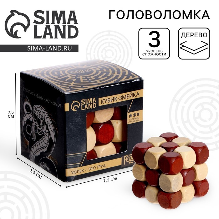 Развивайте логику и моторику через игру! Деревянная головоломка «Кубик-змейка» — это интеллектуальный вызов для тех, кто любит нестандартные задачи. Головоломка тренирует логику, внимание и пространст... Показать описаниевенное мышление. Разберите и соберите переплетенные детали — это требует терпения и смекалки. Особенности * 3D-сборка для развития. Объёмные элементы тренируют пространственное мышление. Ребёнок учится сопоставлять формы, запоминать положение деталей — это укрепляет память и логику. * Безопасная и экологичная. Гладкое дерево не вызывает аллергии. Детали достаточно крупные, чтобы их было комфортно держать. Суть головоломки Попробуйте разобрать головоломку, а затем собрать обратно. Кажется, что это просто, но решение требует анализа и последовательности. Головоломка «Кубик-змейка» — отличный способ отвлечься от гаджетов и проверить свои умения. Подарите себе или близким интеллектуальное развлечение!
