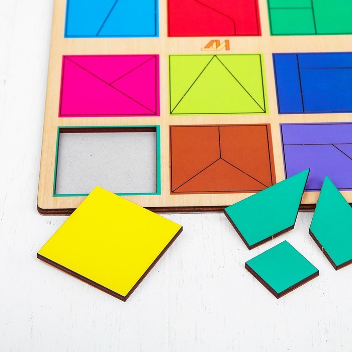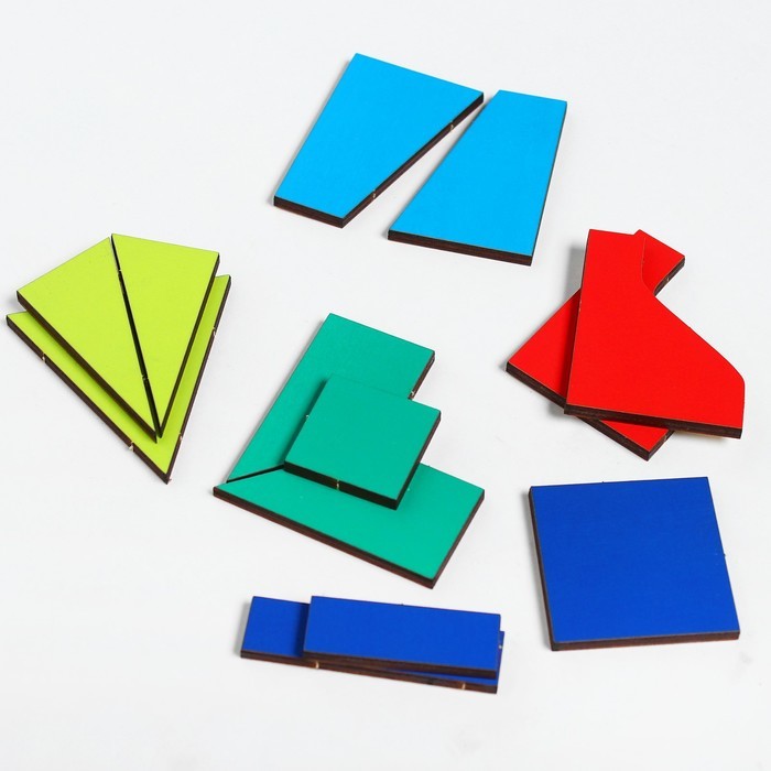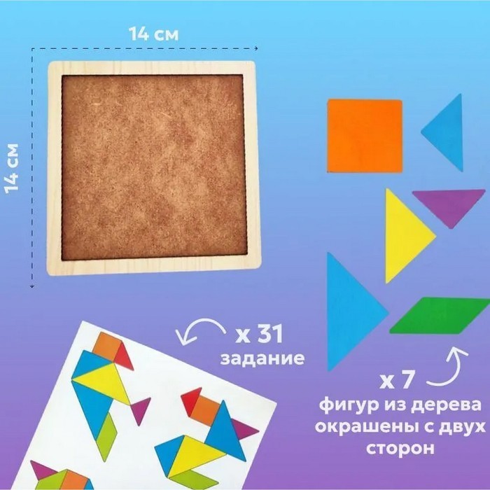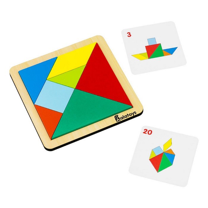 Интеллектуальная головоломка «Танграм» — путешествие в мир логики и творчества! Погрузитесь в мир увлекательных задач и безграничной фантазии с интеллектуальной головоломкой. «Танграм» — это не просто... Показать описание игрушка, а настоящий тренажёр для ума вашего ребёнка. Преимущества 1. Развивает логическое и пространственное мышление. 2. Тренирует внимание и усидчивость. 3. Стимулирует воображение и творческие способности. 4. Развивает мелкую моторику рук. 5. Учит решать задачи нестандартным образом. Как играть * Задача игрока проста: сложить все семь цветных геометрических фигур танграма таким образом, чтобы получилось силуэтное изображение. * При решении головоломки необходимо соблюдать правила: использовать все семь фигур танграма; не накладывать фигуры друг на друга. * Придумывайте свои фигуры или повторяйте задания, предложенные на карточках! «Танграм» — это: * Универсальная игрушка, которая подходит для игр дома, в детском саду или на улице. * Качественная и безопасная игрушка, изготовленная из экологически чистых материалов. * Развивающая игрушка, которая поможет вашему ребёнку сделать первые шаги в познании окружающего мира. В наборе вы найдёте * 7 цветных геометрических фигур танграма. * 31 карточку с заданиями. Рекомендовано для детей от 3 лет.