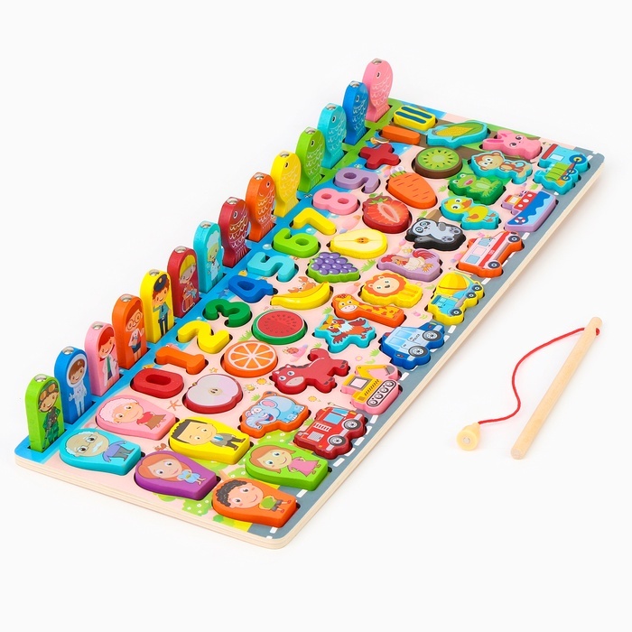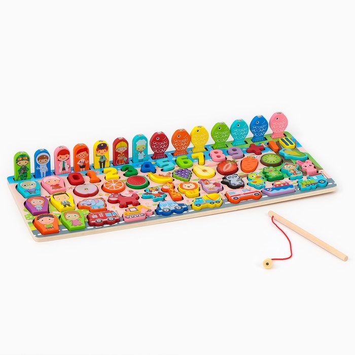 Большой развивающий набор для детей Откройте мир знаний и творчества с нашим уникальным развивающим набором! Этот замечательный набор включает в себя большую рамку-вкладку и 61 деревянную деталь, кото... Показать описаниерые помогут вашему ребенку погрузиться в увлекательное путешествие по изучению окружающего мира. Каждая деталь уникальна и содержит важные знания, а под каждой из них написано название предмета, что способствует развитию навыков чтения и расширению словарного запаса. Что в наборе? * 14 магнитных деталей для увлекательной игры в магнитную рыбалку! С помощью удочки, входящей в комплект, ваши дети смогут ловить яркие детали и развивать координацию движений. * Темы для изучения: профессии, транспорт, члены семьи, цвета, цифры и счёт, названия фруктов и животных. Каждая тема способствует развитию кругозора и понимания окружающего мира. Преимущества набора: * Развитие координации: Игра с магнитными деталями способствует улучшению мелкой моторики и координации движений. * Обучение чтению: Подписи под деталями помогают детям учиться читать и запоминать новые слова. * Расширение кругозора: Изучая различные темы, дети развивают свои знания о мире, что способствует формированию разносторонней личности. Этот набор станет отличным помощником в обучении и развлечении вашего ребенка. Он идеально подходит как для индивидуальных занятий, так и для игр в компании друзей или семьи. Подарите своему ребенку возможность учиться с удовольствием и радостью!