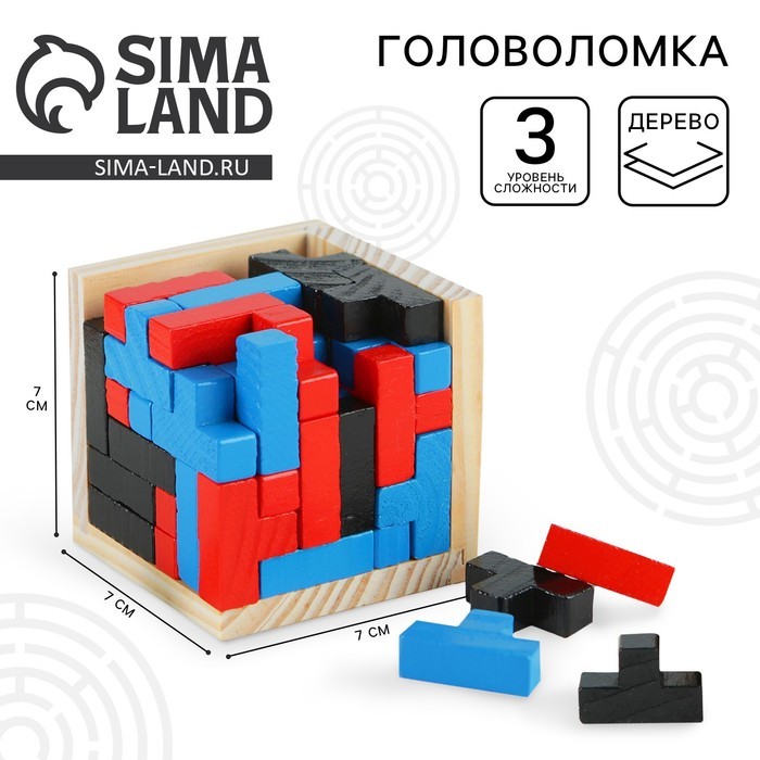 Развивайте логику и моторику через игру! Деревянная головоломка «Куб» — это компактный тренажёр для ума и пальчиков. Натуральное дерево, приятное на ощупь, и продуманная форма деталей делают сборку уд... Показать описаниеобной даже для детей от 5 лет. Особенности * 3D-сборка для развития. Объёмные элементы тренируют пространственное мышление. Ребёнок учится сопоставлять формы, запоминать положение деталей — это укрепляет память и логику. * Безопасная и экологичная. Гладкое дерево не вызывает аллергии. Детали достаточно крупные, чтобы их было комфортно держать. Суть головоломки Задача — разобрать и собрать обратно объёмную фигуру из отдельных элементов. Уровень сложности оптимален для первого знакомства с 3D-головоломками: ребёнок не столкнется с чрезмерными трудностями, но и не потеряет интерес слишком быстро.