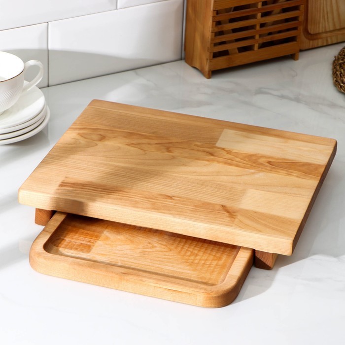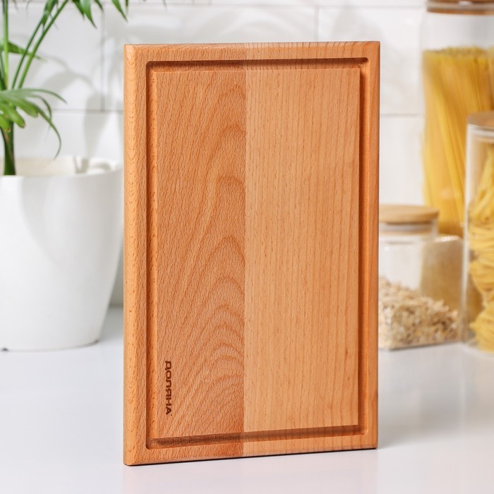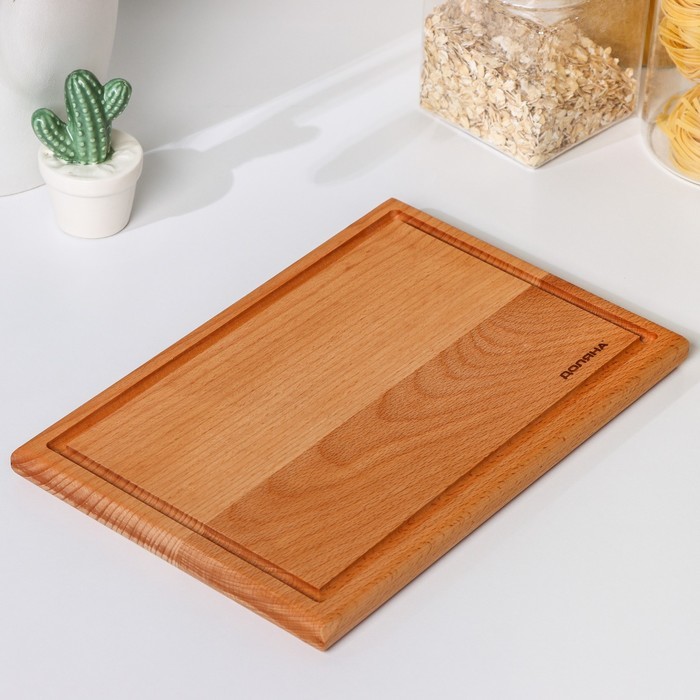 Доска разделочная Доляна «БУКовский», 30?20?2 см, дерево бук, с ручкой и кровостокомДоска разделочная Доляна «БУКовский», 30?20?2 см, дерево бук, с ручкой и кровостоком