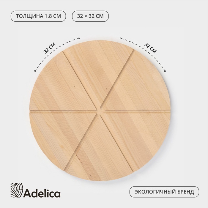 Доска для пиццы деревянная Adelica «Итальяно», 6 кусков, d=32 см, толщина 1.8 см, берёза Вопросы по товару