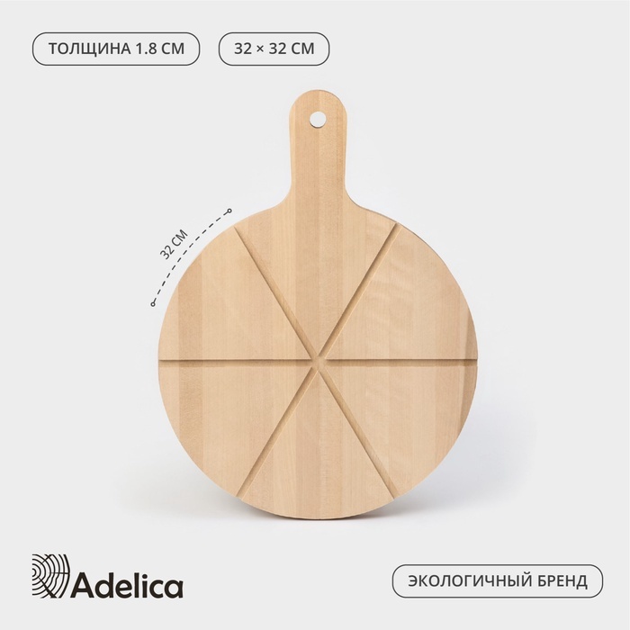 Доска для пиццы деревянная Adelica «Итальяно», 6 кусков, d=32 см, толщина 1.8 см, берёзаДоска для пиццы деревянная Adelica «Итальяно», 6 кусков, d=32 см, толщина 1.8 см, берёзаДоска для пиццы деревянная Adelica «Итальяно», 6 кусков, d=32 см, толщина 1.8 см, берёза