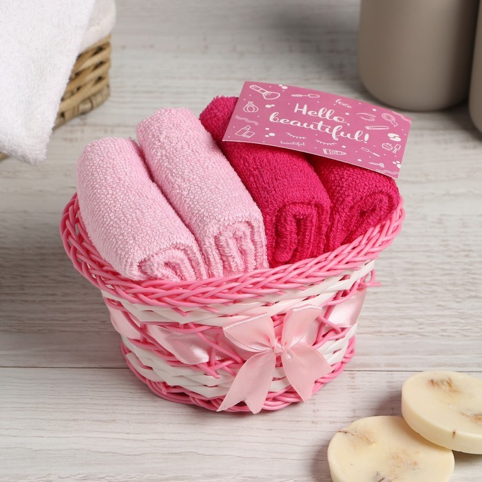 Набор махровых декоративных салфеток Этель Hello, Beautiful, 30?30 см - 4 шт, розовый, 100% хлопок Вопросы по товару