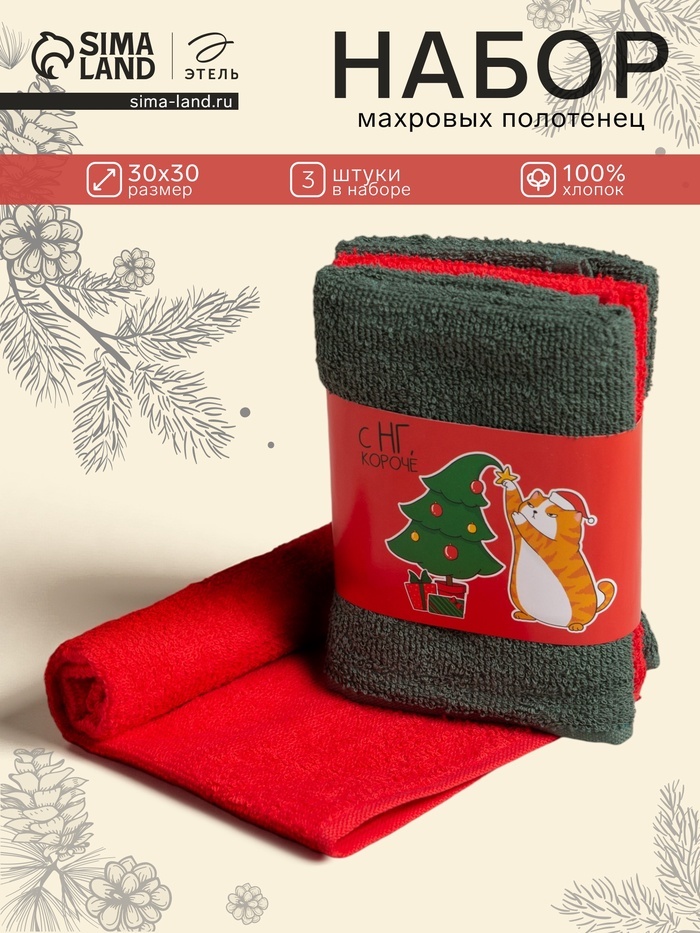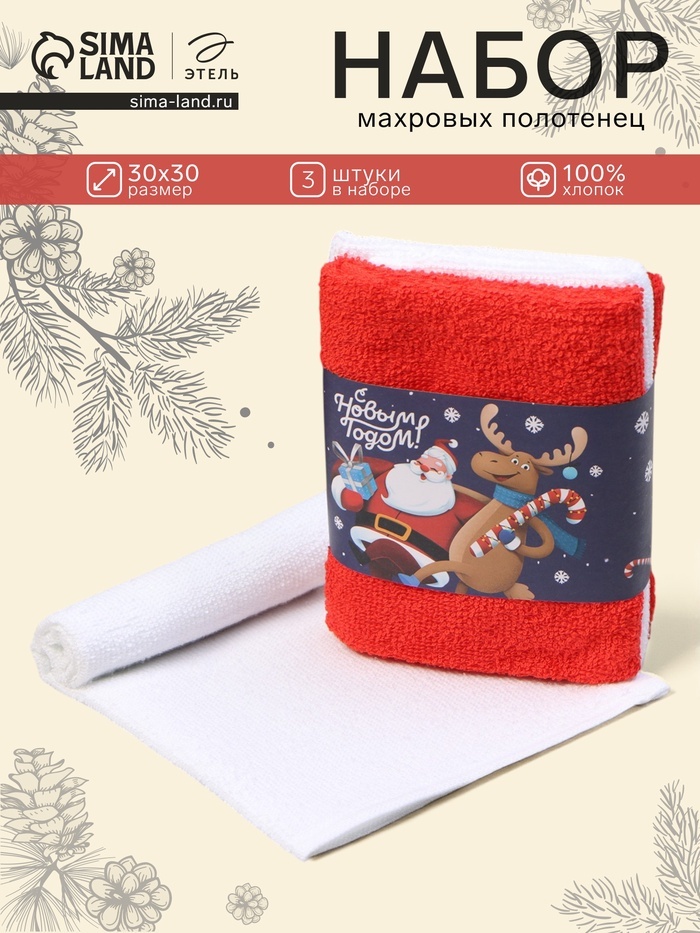 Набор махровых полотенец «Этель» Xmas, 30?30 см - 3 шт., хлопок 100%Набор махровых полотенец «Этель» Xmas, 30?30 см - 3 шт., хлопок 100%Набор махровых полотенец «Этель» Xmas, 30?30 см - 3 шт., хлопок 100%