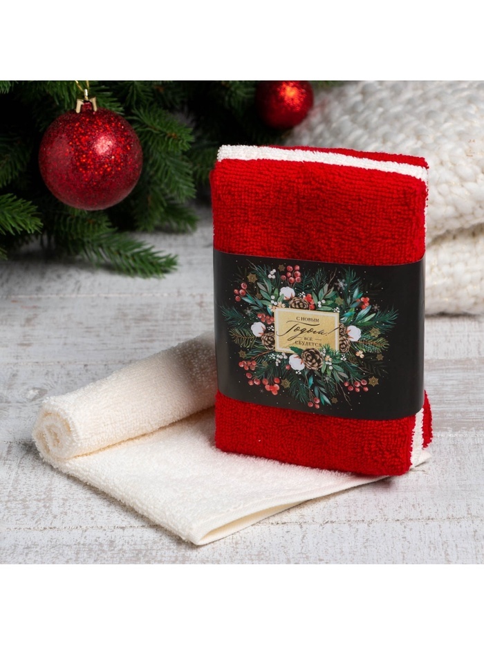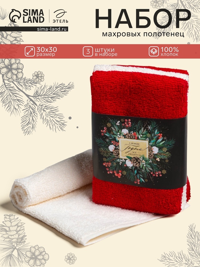 Набор новогодних махровых полотенец «Этель. Всё сбудется» 30?30 см - 3 шт., хлопок 100%