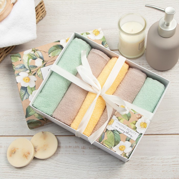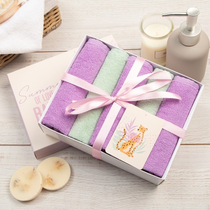 Махровые полотенца «Этель» Summer, 30?30 см - 5 шт., хлопок 100%