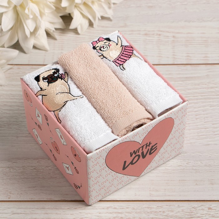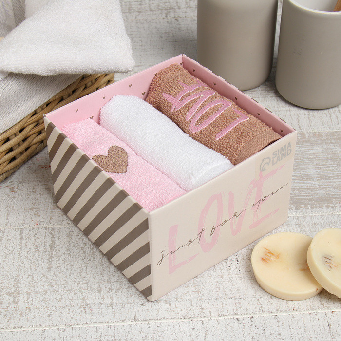 Полотенца махровые «Этель» LOVE, 3 шт., 30?60 см, хлопок 100%, розовые