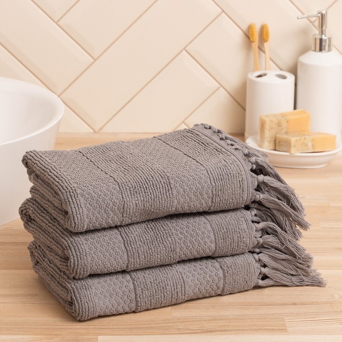 Набор махровых декоративных салфеток Этель «Вид 2» 30?30 см-3 шт., цвет бордовый, 100% хлопок
