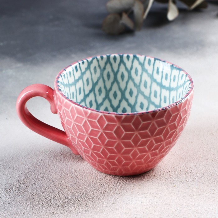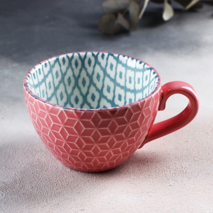 Кружка «Винтаж» — это воспоминание, которое ещё не случилось. Розовая основа — не кукольная сладость, а тёплый оттенок старинной открытки, а внутри, под ободком, — нежный голубой орнамент, как узор на... Показать описание фарфоре бабушкиной чашки, случайно сохранившийся в ящике комода. Барельефные линии добавляют объём, но не вычурность — как если бы кружку лепил человек, который помнит, как выглядит свет сквозь старое окно. Это не ностальгия по прошлому. Это — выбор *эстетики заботы*. Особенности * Печать фиксирует орнамент с ювелирной точностью, а барельеф придаёт поверхности тактильную глубину — рисунок не просто виден, он *ощущается* пальцами, как память в деталях. * Сочетание розового и голубого работает без наивности: оттенки приглушённые, матово-глянцевые, как акварель на плотной бумаге — нежные, но устойчивые. * Гладкая глазурованная поверхность сохраняет блеск, но не отражает, как зеркало — она *смягчает* свет, как старинное стекло. * Совместимость с микроволновой печью и посудомоечной машиной делает кружку частью современного ритма — винтаж здесь не про музей, а про живую традицию. Подарите её человеку, чей дом украшают не тренды, а вещи с историей — даже если эта история началась сегодня. Или себе — как жест уважения к повседневности. Потому что винтаж — это не возраст. Это внимание. То самое, что превращает кружку в ритуал, а утро — в начало чего-то доброго. Дополнительно Объём — 290 мл.