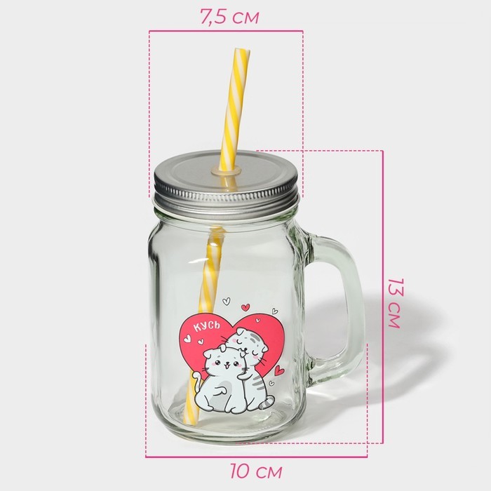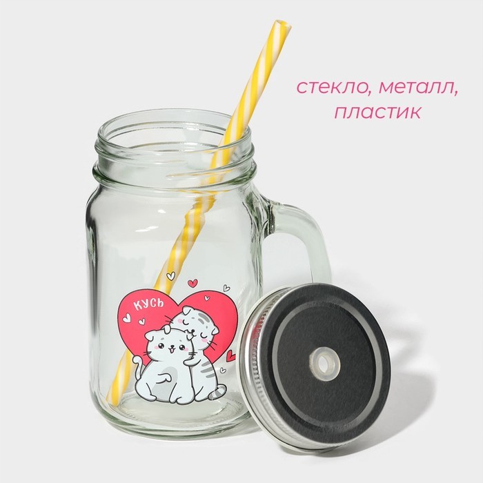 Банка с крышкой и трубочкой «Котик», 450 мл, 10?7.5?13 смВопросы по товару