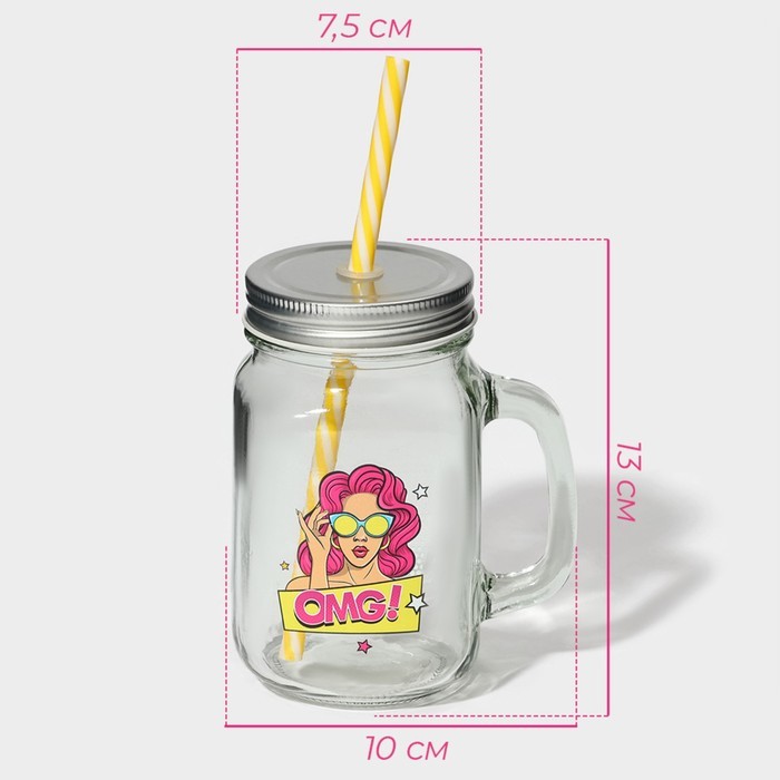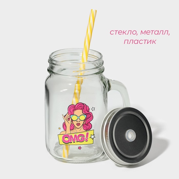 Банка с крышкой и трубочкой «Комикс», 450 мл, 10?7.5?13 смВопросы по товару