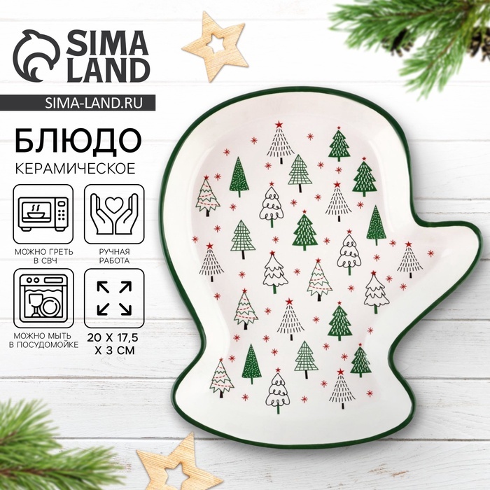 Блюдо новогоднее «Зимний лес», 20?17.5?3 см, ручная работаВопросы по товару