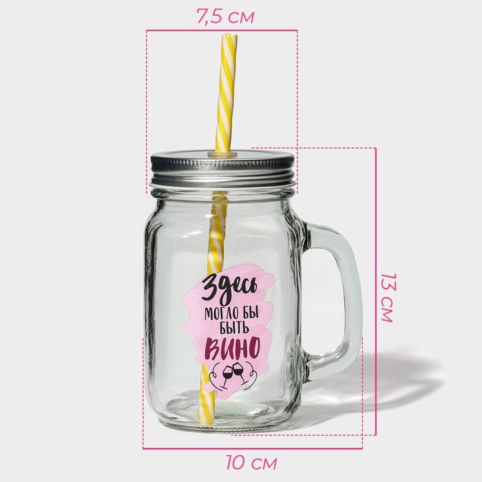 Банка с крышкой и трубочкой «Вино», 450 мл, 10?7.5?13 смВопросы по товару
