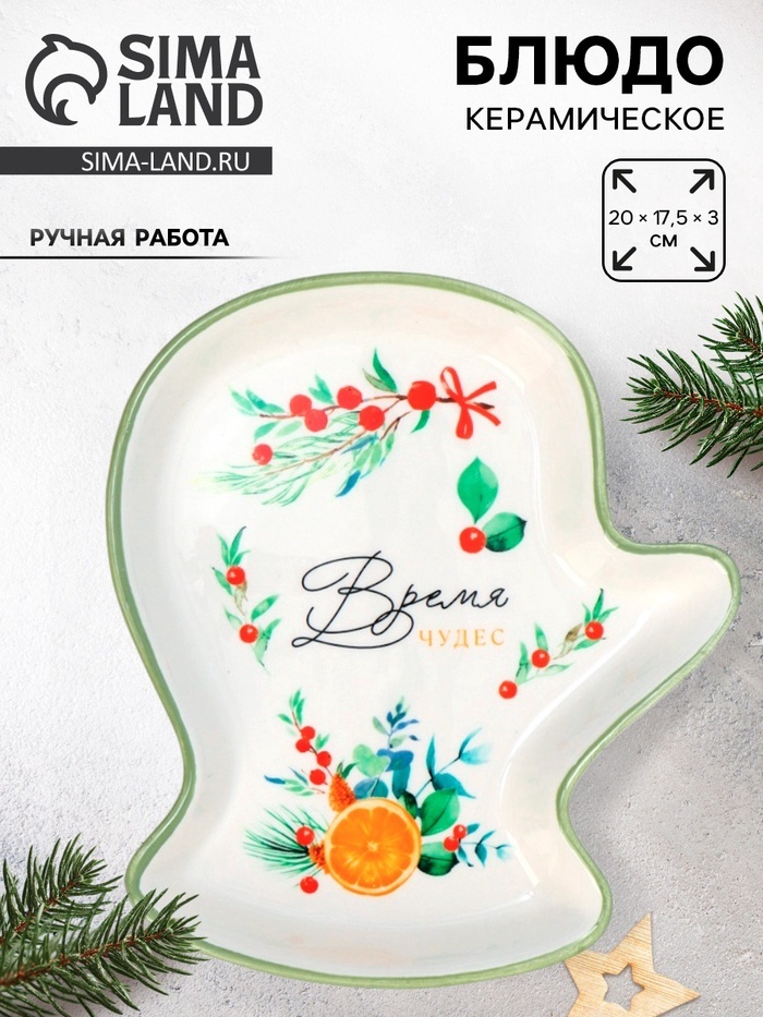 Блюдо новогоднее «Чудесное время», 20?17.5?3 см, ручная работаВопросы по товару