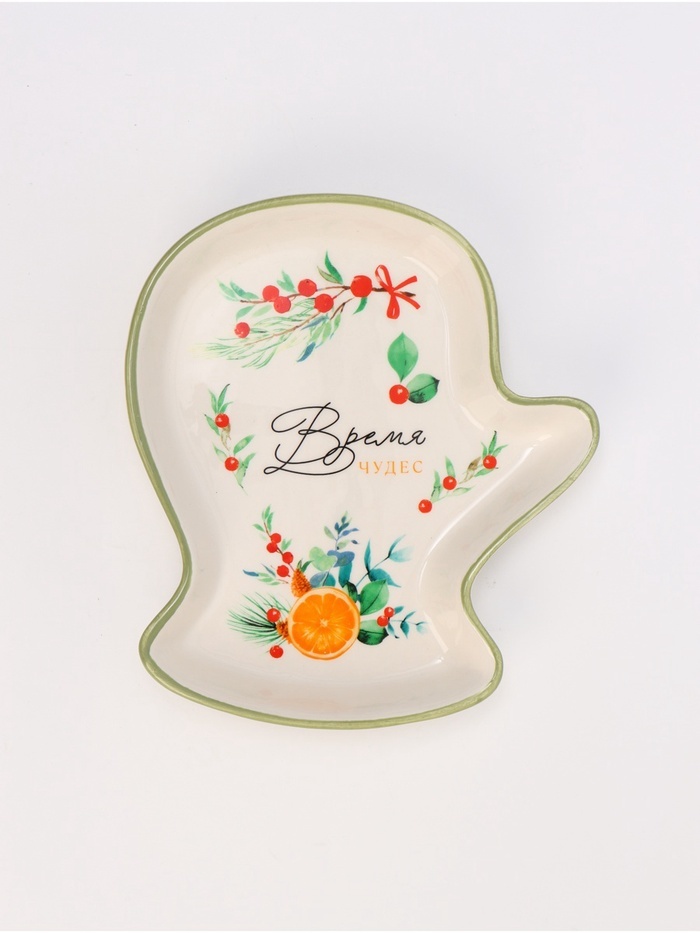Блюдо керамическое в форме рукавицы — идеальный выбор для тех, кто ценит качество и стиль. Размер блюда – 20 ? 17,5 ? 3 см Преимущества: * Прочность и долговечность: изготовлено из высококачественной ... Показать описаниекерамики, которая устойчива к царапинам и сколам. * Экологичность: не содержит вредных веществ, безопасно для здоровья. * Устойчивость к высоким температурам: можно использовать для подачи горячих блюд. * Оригинальный дизайн: украшено ярким новогодним рисунком, который поднимет настроение и добавит радости в праздничные дни. * Универсальность: подходит для сервировки стола, хранения продуктов или использования в качестве подарка. * Отличный выбор для новогодних праздников: станет прекрасным дополнением к праздничному столу или отличным подарком для родных и друзей.