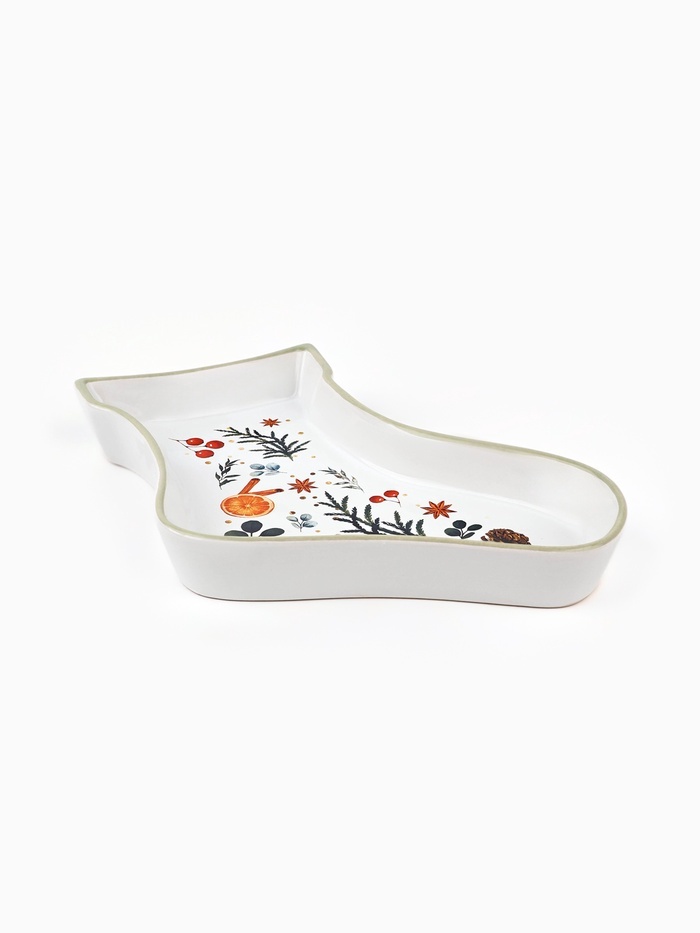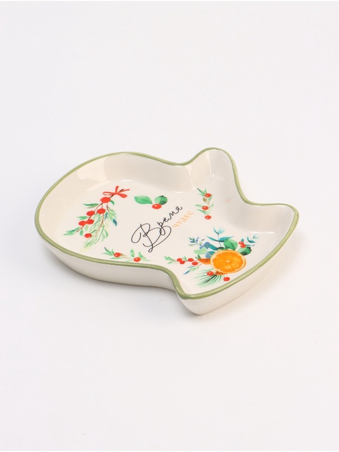 Блюдо керамическое в форме ёлки — идеальный выбор для тех, кто ценит качество и стиль. Размер блюда – 23 ? 22 ? 2 см Преимущества: * Прочность и долговечность: изготовлено из высококачественной керами... Показать описаниеки, которая устойчива к царапинам и сколам. * Экологичность: не содержит вредных веществ, безопасно для здоровья. * Устойчивость к высоким температурам: можно использовать для подачи горячих блюд. * Оригинальный дизайн: украшено ярким новогодним рисунком, который поднимет настроение и добавит радости в праздничные дни. * Универсальность: подходит для сервировки стола, хранения продуктов или использования в качестве подарка. * Отличный выбор для новогодних праздников: станет прекрасным дополнением к праздничному столу или отличным подарком для родных и друзей.
