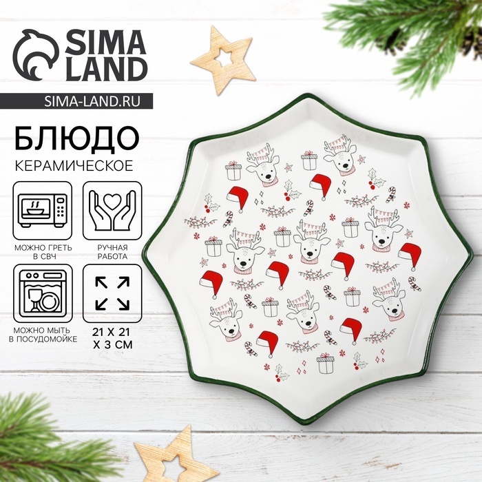 Блюдо керамическое «Новогодние олени», 21?21?3 см, ручная работаВопросы по товару