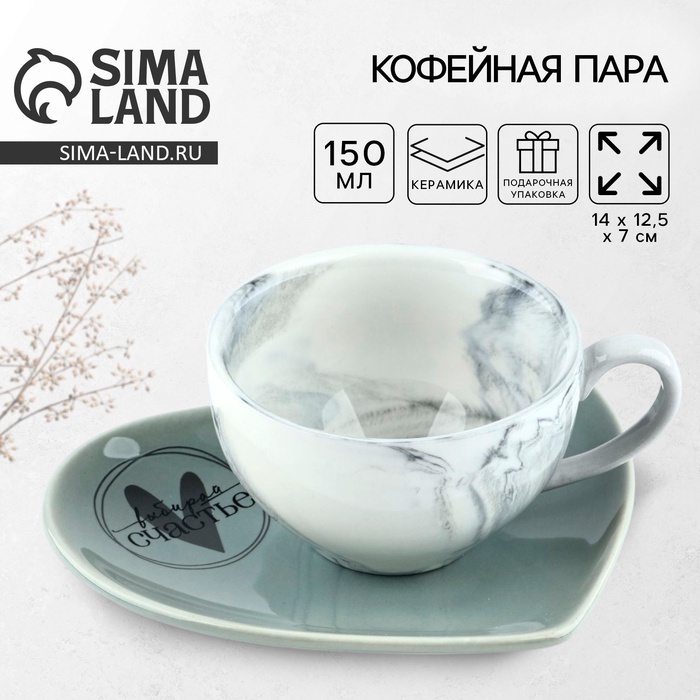 Кофейная пара «Выбирай счастье»: кружка 150 мл, блюдцеВопросы по товару