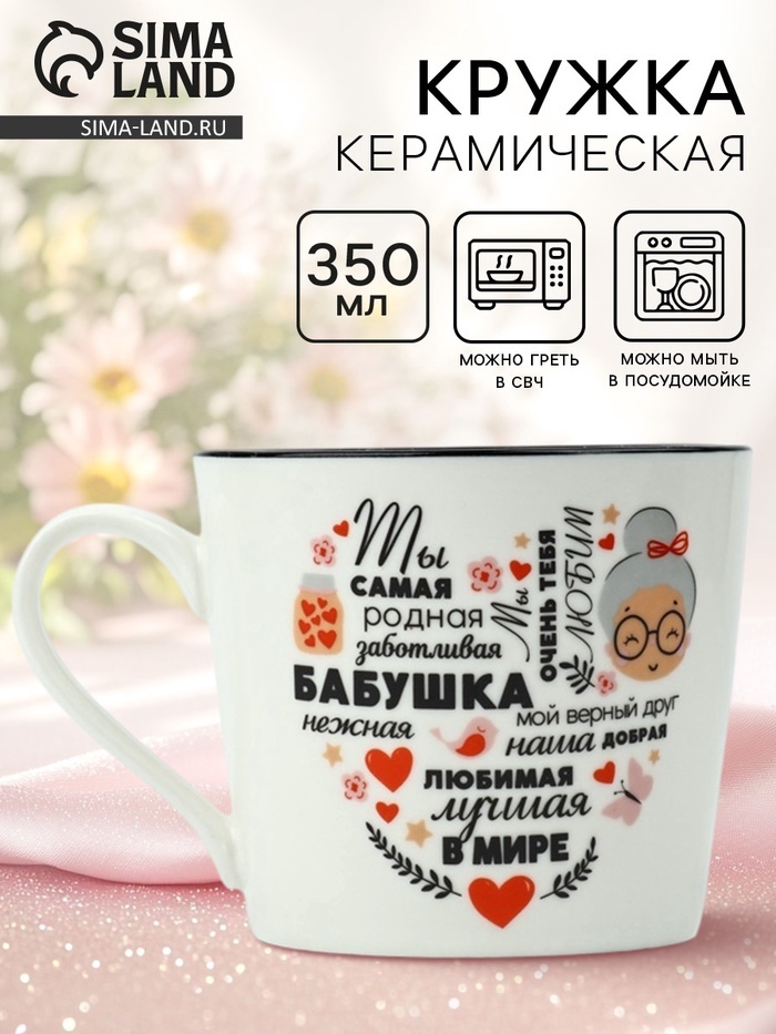 Кружка «Любимой бабушке» — это тёплое «спасибо», умещающееся в ладони. Нежно-розовая керамика, как утренний свет в её кухне, и деколь с рассыпанными сердцами — не пафосным орнаментом, а следами заботы... Показать описание, накопленными годами. Надпись ”Любимой бабушке” расположена просто, без восклицаний: как подпись под фото в альбоме — тихая, но навсегда. Особенности * Печать вплавлена в глазурь — изображение не стирается и не бледнеет даже при ежедневном использовании. * Гладкая поверхность без шероховатостей — удобна в обращении, особенно для рук, привыкших к заботе, а не к хрупким вещам. * Совместимость с микроволновой печью и посудомоечной машиной делает кружку практичной частью быта — как её умелые руки всегда были частью вашей жизни. * Тематика раскрыта без штампов: сердца — не клише, а символы конкретных моментов — варенья в банках, писем с дачи, объятий без слов. * Индивидуальная упаковка превращает кружку в готовый подарок — не требующий дополнительных лент, но сохраняющий искренность жеста. Как чай, налитый с запасом — на случай, если захочется поговорить подольше Эта кружка похожа на тот момент, когда бабушка, не спрашивая, ставит перед вами вторую порцию — потому что знает: разговор только начинается. Сердца на ней — не декор. Это отметки времени: одно — за сказку перед сном, другое — за совет, который сработал спустя годы, третье — просто за то, что она есть. Подарите её не на праздник — а *между* праздниками. Когда вдруг вспоминаете запах её пирогов. Или как она говорила ваше имя. Или как всегда оставляла свет в прихожей. Потому что ”Любимой бабушке” — это не надпись. Это долг. Тёплый, лёгкий, как пар над чашкой. Дополнительно Объём — 690 мл.