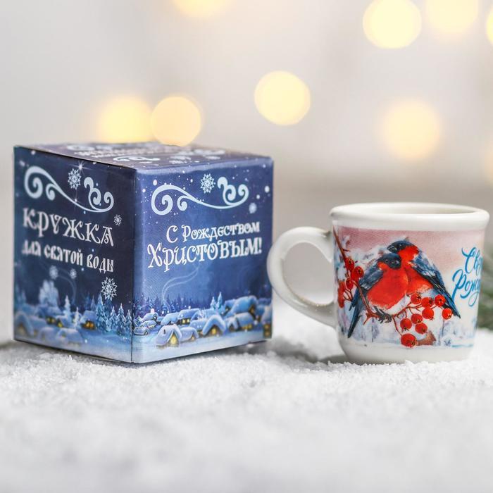 Кружечка – сделана из керамики. Кружка сувенирная, небольшая подходит для святой воды. Наша кружечка станет хорошим подарком на Рождество и другие православные праздники себе и близким.