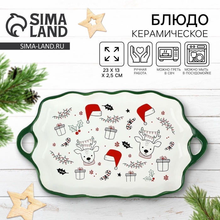 Блюдо керамическое «Новогодние олени», 23?13?2.5 см, ручная работаВопросы по товару