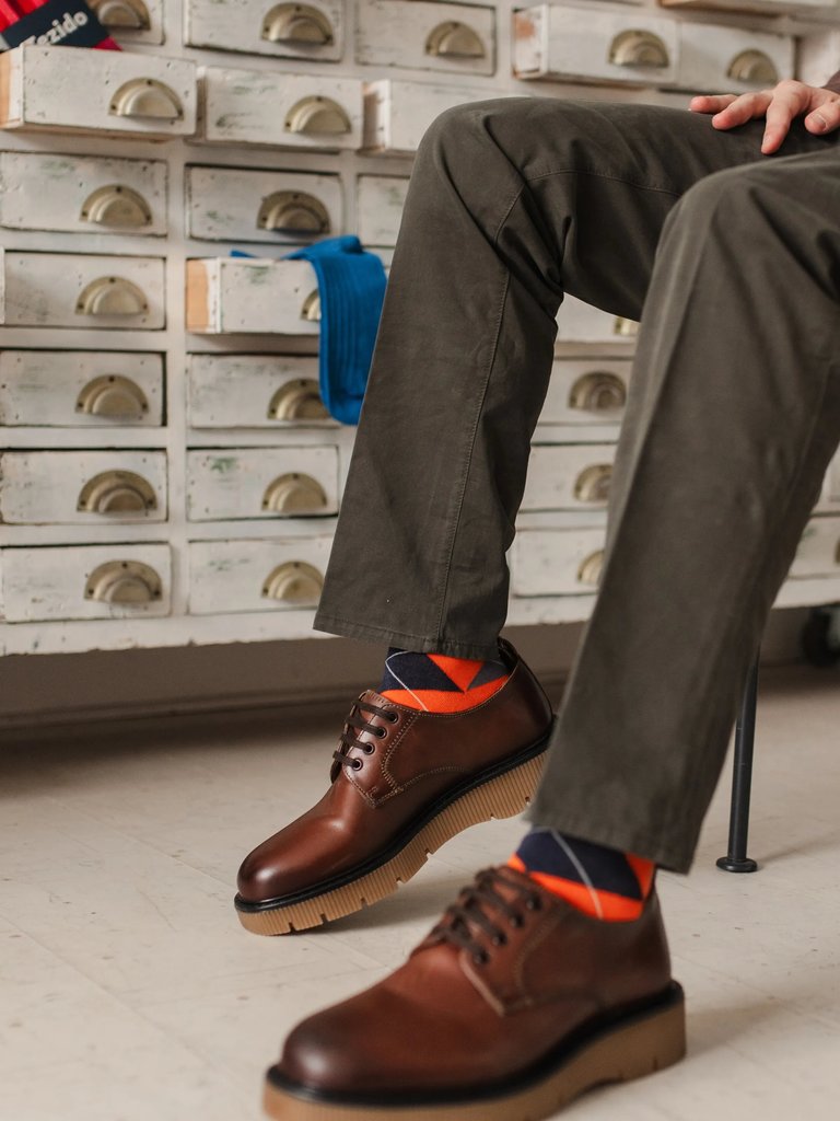 Волынка дополняет образ традиционного шотландца, является столь же обязательным элементом, как волынка, шотландский кинжал и другие элементы национального костюма. Узор Argyle неразрывно связан с имен... Показать описаниеем Роберта Прингла, основавшим в 1815 году компанию Pringle of Scotland. Первые сто лет она занималась производством трикотажного белья и чулок. Именно Pringle of Scotland ввела в мировую моду узор из ромбов. Пика своей популярности Argyle достиг после Первой мировой войны, ведь изделия Pringle of Scotland стал носить король Великобритании Эдуард VIII. Состав и условия ухода 80% Хлопок, 15% Полиамид , 5% Эластан · Деликатная стирка до 40 градусов · Не отбеливать · Не гладить · Не сушить и не отжимать · Химчистка запрещена Натуральный хлопок со временем может скатываться, поэтому рекомендуем деликатную стирку. Можно использовать машинку от катышек на одежде. После стирки в горячей воде носки могут дать усадку, не переживайте, на ноге они вернут свою прежнюю форму. Преимущества · Плоский шов, не ощущается пальцами · Связаны на итальянском оборудовании частым переплетением нити, что придает прочности и дополнительного комфорта