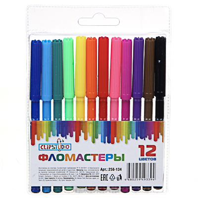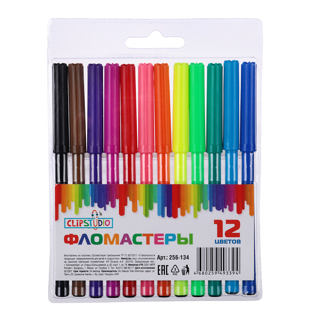ClipStudio Фломастеры 12 цветов "Альфа", с цв.вент.колпачком, большие, смываемые, пластик, ПРЕМИУМ Вопросы по товару