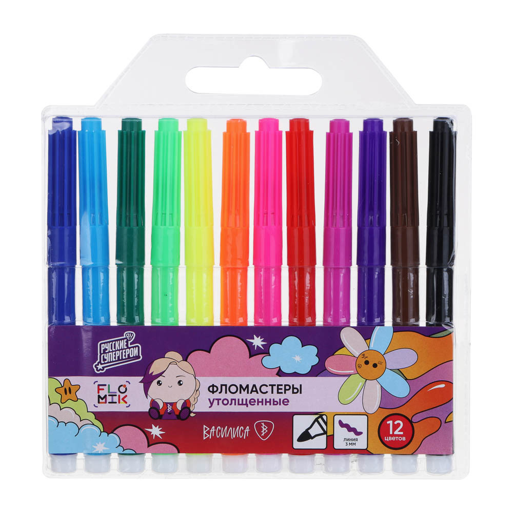 FLOMIK Набор фломастеров утолщенных, 12 цветов, 14см, D=1см, наконечник 3мм, ПВХ - пенал Вопросы по товару