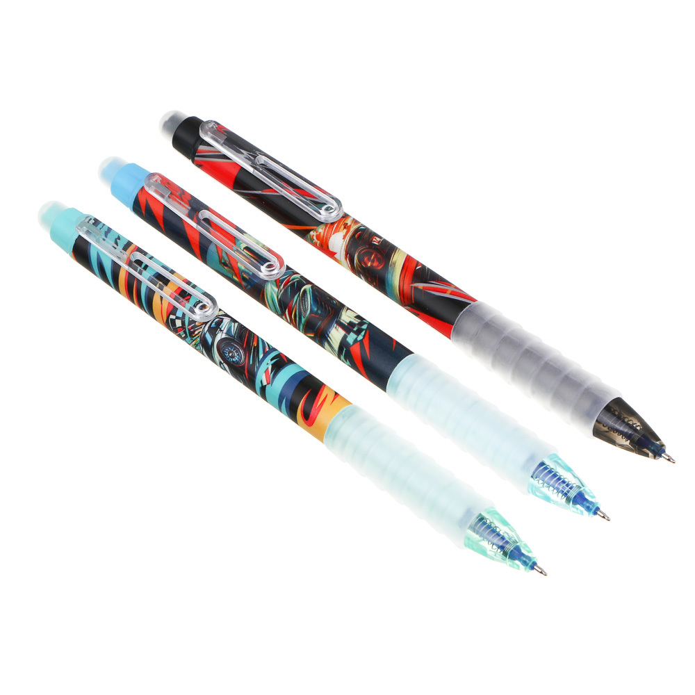 Авторучка гелевая "пиши-стирай" синяя, корпус с принтом "Машины", антискользяцая вставка, 3 дизайна Вопросы по товару