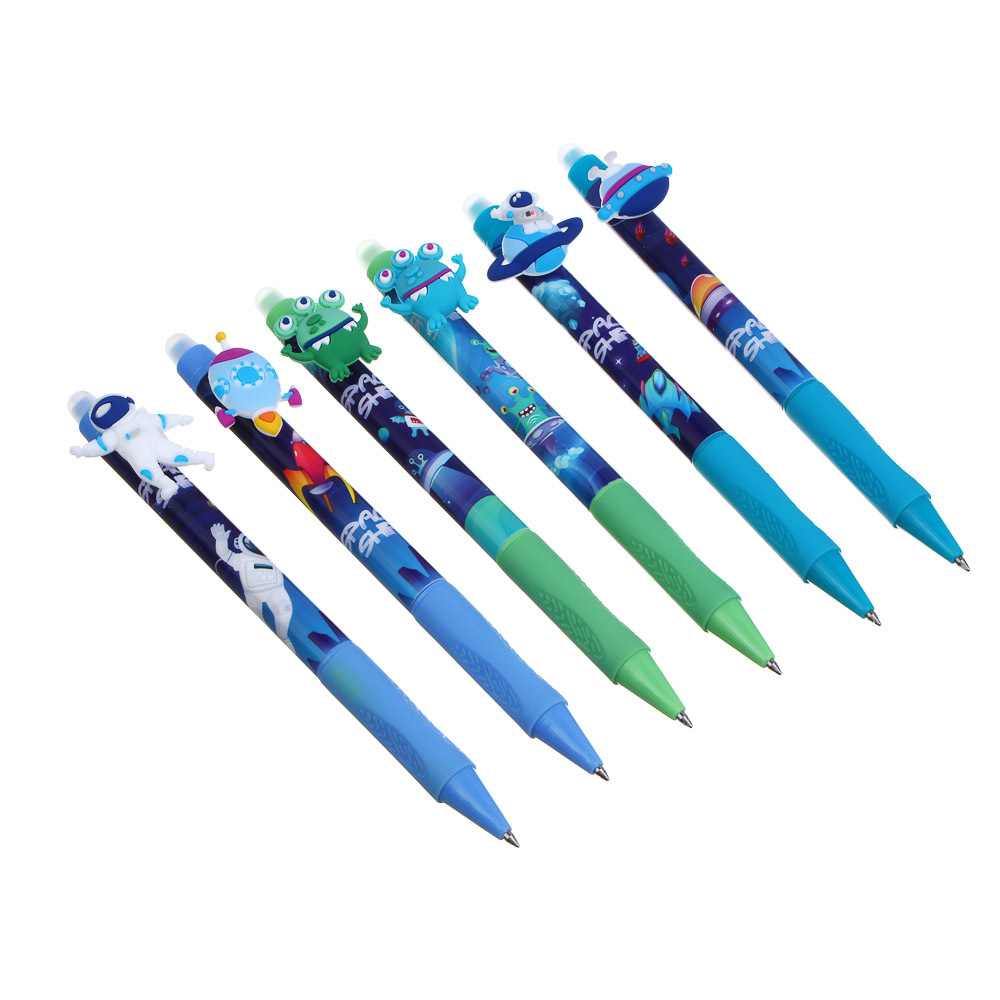 Авторучка гелевая "пиши-стирай" синяя, с кнопкой-фигуркой "Мальчиковые фигурки", 6 дизайнов