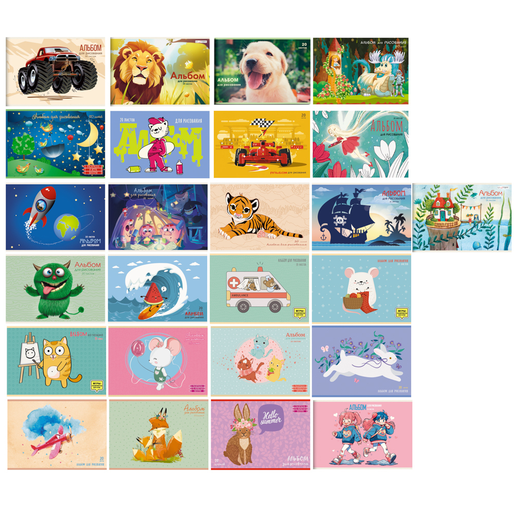 Альбом для рисования A4 20л., офсет 110г/м2, скрепка, в ассортименте