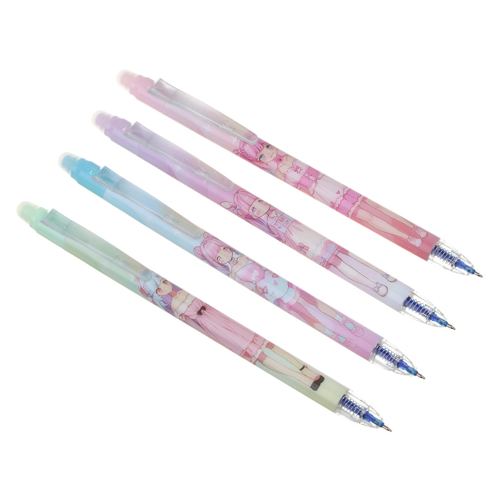 Авторучка гелевая "пиши-стирай" синяя, цветной корпус с принтом "Куколки", 3 дизайна