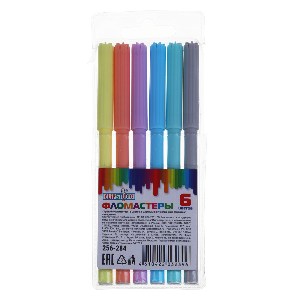ClipStudio Фломастеры 6 цветов, с цветным вент.колпачком, 2 вида, ПВХ пенал с подвесом