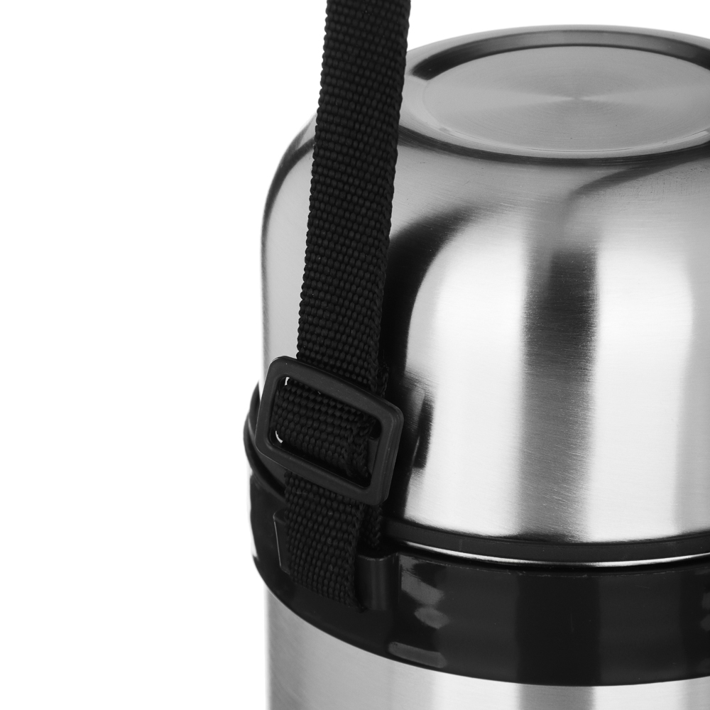 Термос с широкой горловиной SATOSHI Акка объемом 1,2 л выполнен из высококачественной нержавеющей стали 18/10. Материал устойчив к механическим повреждениям, не меняет вкус и аромат напитков. Двойные ... Показать описаниестенки корпуса эффективно сохраняют температуру напитка до 12 часов, позволяя наслаждаться горячим чаем или кофе в течение длительного времени. Удобная система открывания и наливания без потери температуры делает использование термоса максимально комфортным. Дополнительный ремень для удобной переноски позволяет брать термос с собой в любые поездки и путешествия. А крышку можно использовать как чашку с ручкой, что делает этот термос ещё более функциональным. Широкая горловина облегчает процесс наливания напитков и добавления в них ингредиентов. Благодаря компактным размерам, термос легко поместится в сумку или рюкзак. Благодаря качественному исполнению и материалам, термос будет служить вам многие годы, сохраняя первоначальные свойства и внешний вид. Рекомендации Перед первым использованием все детали термоса обязательно нужно вымыть и вытереть насухо. Использовать строго по назначению.