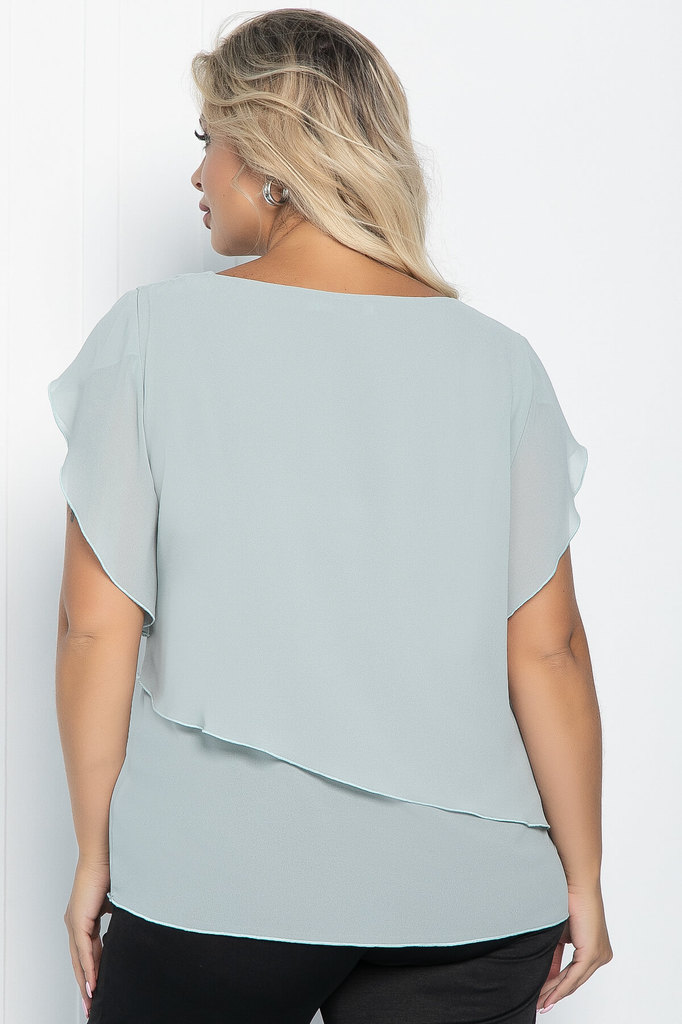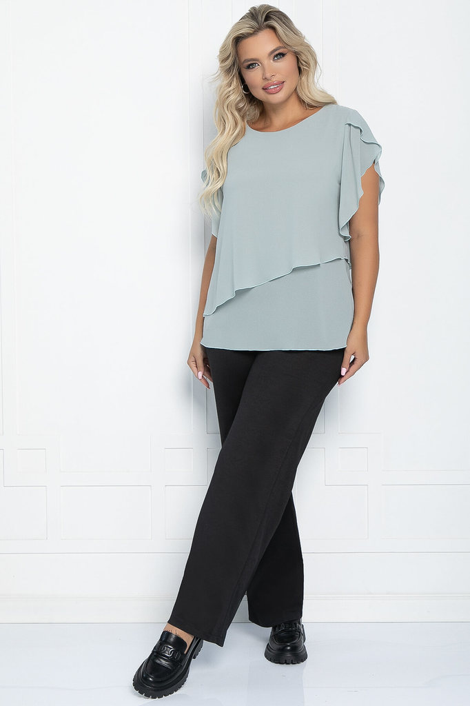 Артикул: Б11052. Тип ткани: синтетическая. Состав: 98% полиэстер, 2% эластан. Материал: блузочная. Цвет: серо-голубой. Принт: нет. Вид застежки: без застёжки. Силуэт: свободный. Карманы... Показать описание: отсутствуют. Подкладка: отсутствует. Декоративные элементы: отсутствуют. Длина по спинке от верхней точки плеча: 44-46/ 67 см, 48/ 68 см, 50/ 69 см, 52-54/ 70 см, 56/ 71 см. Размер изделия на модели: 52. Рост модели: 170 см. Изящная и красивая блуза с оригинальным фантазийным рукавом. Воздушная ткань и удобный фасон позволяют создавать разнообразные образы в зависимости от настроения. В сочетании с юбкой она создаёт элегантный образ, а с джинсами — повседневный. Уход за изделием: ручная стирка до 30 градусов; нельзя отбеливать; отжим запрещён; гладить при t не более 110 С; гладить с изнанки. Внимание! Рекомендуем ориентироваться на размерную сетку и выбирать свой привычный размер, согласно размерной таблице. *Допуск отклонения длины при массовом производстве 1-3 см является нормой.