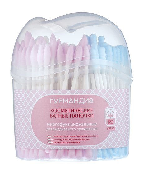 Двусторонние ватные палочки из 100% натурального хлопка. Предназначены для коррекции макияжа и для личной гигиены.