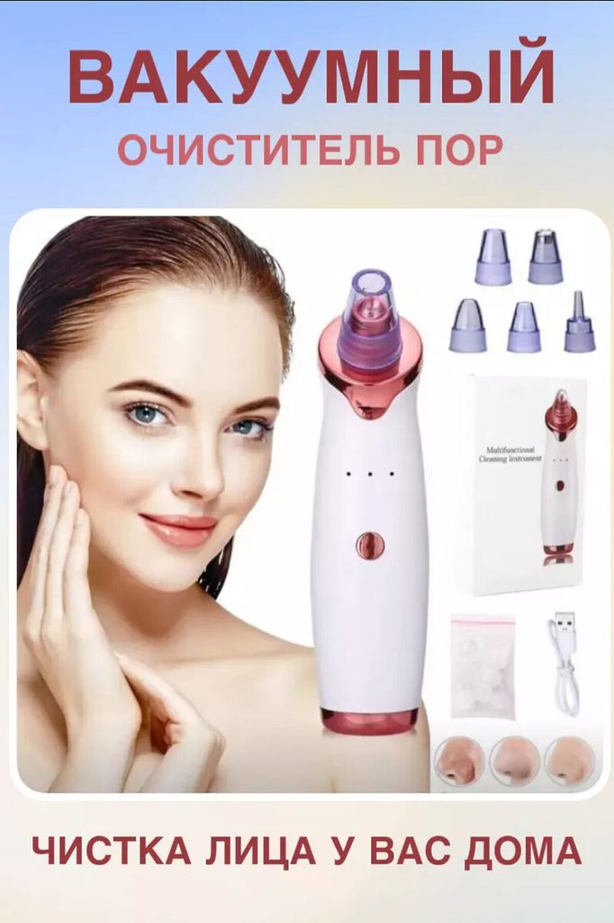 Электрический вакуумный очиститель пор подарит красоту и чистоту вашей коже в зоне лица и подбородка. Портативный косметологический инструмент подходит для проблемной кожи и служит для очистки овала л... Показать описаниеица и шеи от высыпаний, прыщей, угревой сыпи и черных точек. Самый лучший аппарат массажер очиститель позволит в домашних условиях избавиться от проблем кожи, угрей, сыпи и акне без воспалений, постакне и шрамов. Эффективная косметическая машинка прекрасное средство для очистки кожи от пыли, уменьшения пигментных пятен и лечения заболеваний кожи. Антивозрастной прибор для массажа с насадками разной формы широкая, овальная, узкая, обладает подтягивающим эффектом против морщин и служит для восстановления тонуса кожи. Вы можете использовать это чудо техники для удаления сыпи и подтяжки кожи и дома, и в походных условиях. Вы можете подарить вакуумный очиститель матери, жене или любимой девушке. Настоящий подарок для тех, кто заботится о здоровье лица. Прибор для вакуумной чистки лица поможет улучшить кровообращение, выполнить вакуумный массаж. Вакуум лифтинг настоящий освежитель для лица. Лицо будет выглядеть здоровее и моложе. Вакуумный очиститель пор с камерой сузит поры, поможет избавиться от сальных пробок и комедонов. Вакуумный прибор для очистки кожи имеет несколько уровней мощности всасывания. Аппарат для вакуумной чистки пор работает от собственного аккумулятора, заряда хватит на 3 часа непрерывной работы, заряжается от USB. Вакуумный аппарат компактный, его легко взять с собой в путешествие.