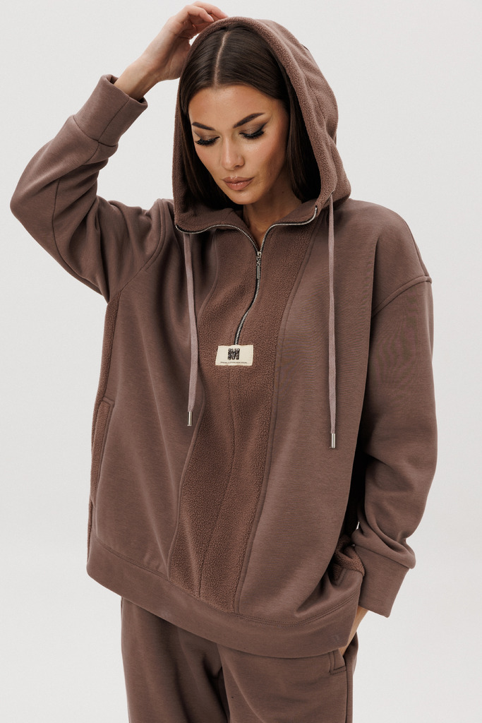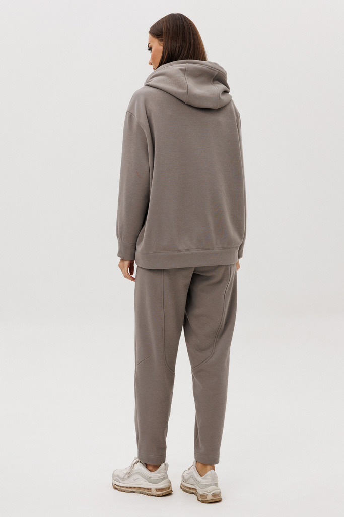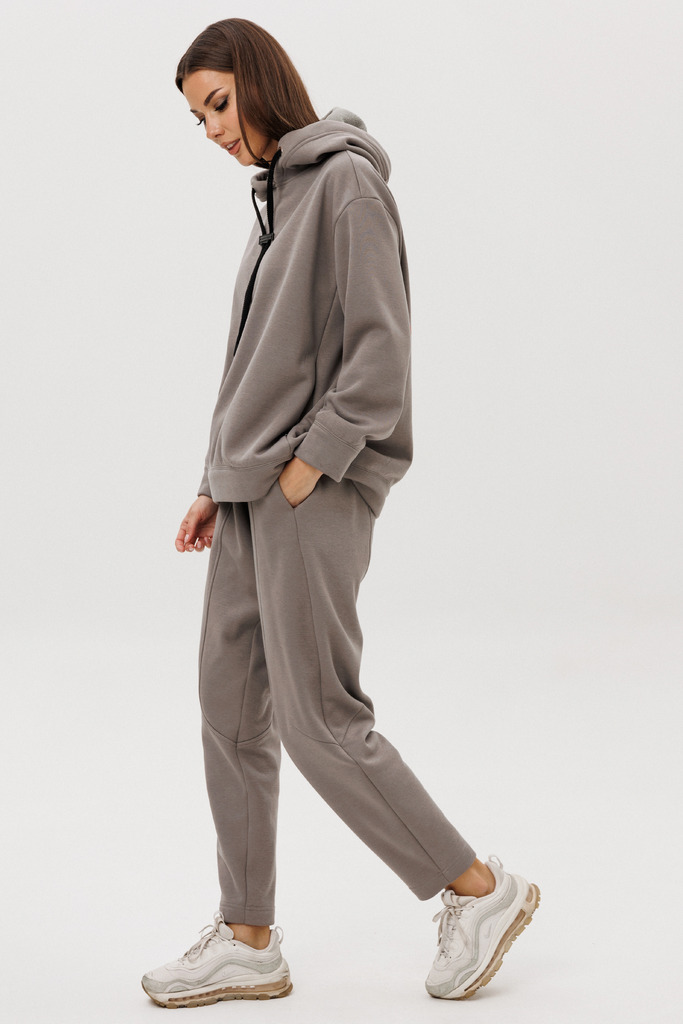 Перед тем, как отправиться на прогулку, шоппинг или активный вид отдыха, каждая из нас задумывается об одежде, которая будет практичной и одновременно стильной. Худи на молнии, что может быть удобнее!... Показать описание Покрой - реглан, воротник высокая стойка. Полочка с центральной застежкой на тесьму-молнию и боковым карманом с листочкой. По низу рукава - притачной манжет. По низу изделия - притачной пояс. Брюки в расслабленном стиле. Высокая посадка, боковой карман с листочкой, эластичный пояс с люверсами и отделочным шнуром. Длина брюк около 104 см пэ 72%, вискоза 12%, нейлон 10%, спандекс 6%.