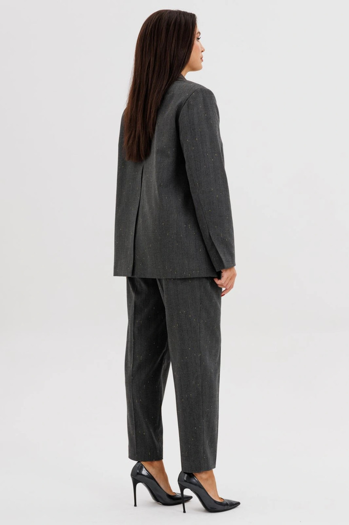 Комплект из невероятного, мерцающего полотна Жакет свободного расширенного силуэта, втачного покроя с центральной застёжкой и классическим английским воротником. Полочка с отрезным бочком, нагрудной в... Показать описаниеытачкой и прорезным карманом с клапаном. Спинка с центральным швом, шлицей и отрезным бочком. Рукав двухшовный с отлетной шлицей. Брюки классического покроя с высокой посадкой на притачном поясе со шлёвками, зауженные. Застежка брючная на потайной крючок и молнию. Передние половинки брюк с мягкими складками-защипами и наклонными боковыми карманами. Задние половинки брюк с вытачками и прорезными карманами с листочками. Длина брюк около 100 см ПЭ 64%, вискоза 34%, спандекс 2%