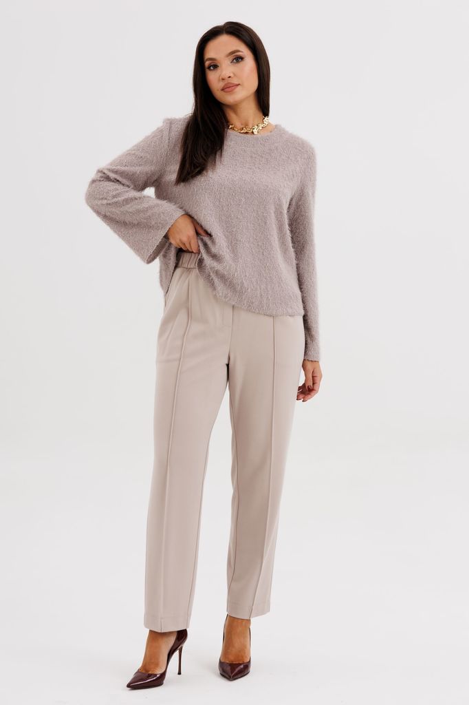 Элегантный брючный комплект — идеальное решение для стильных и уверенных в себе женщин. Комплект состоит из мягкой фактурной блузы свободного кроя и прямых брюк со стрелками. Такое сочетание... Показать описание подчеркивает женственность и утончённый вкус, оставаясь при этом удобным и практичным. Блуза выполнена из нежного трикотажа с лёгким ворсом — материал красиво драпируется и придаёт образу уют. Брюки классического кроя с высокой посадкой и застроченными стрелками визуально вытягивают силуэт и создают безупречную посадку. Комплект отлично подойдёт для офиса, деловых встреч, прогулок или вечернего выхода. Лаконичный дизайн позволяет легко сочетать вещи с обувью на каблуке, ботильонами или кедами. Особенности модели: Комплект: блуза + брюки Фактурная, мягкая блуза с лёгким блеском Брюки со стрелками и комфортной посадкой Универсальный стиль — от делового до casual chic Нежная цветовая гамма, подчёркивающая утончённость Джемпер ПЭ 100%? Брюки вискоза 75%, ПЭ 25%